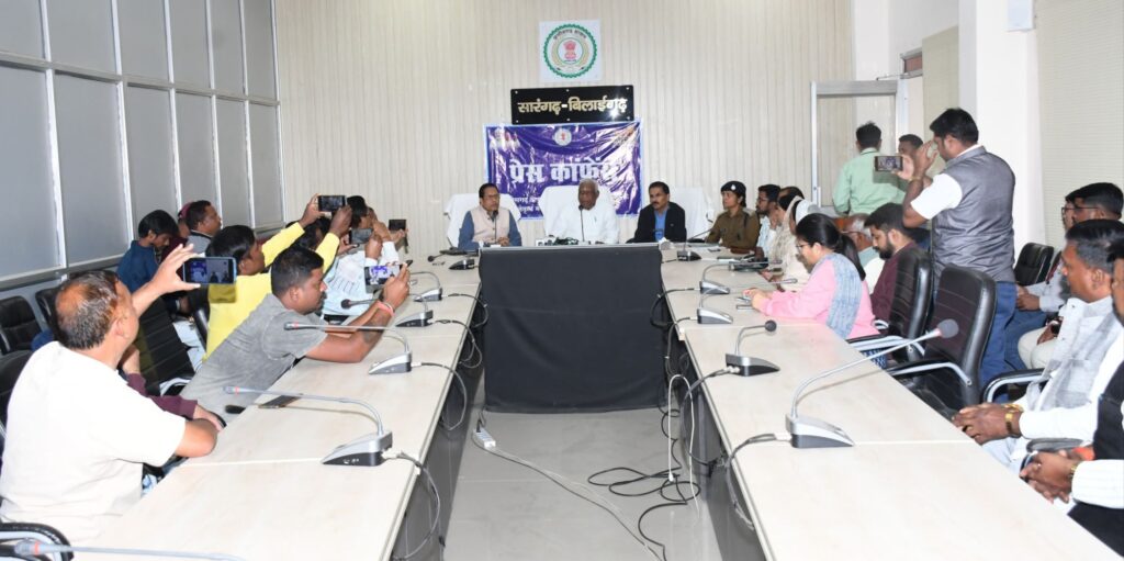 सारंगढ़ बिलाईगढ़, ///मुख्यमंत्री विष्णु देव साय के नेतृत्व में राज्य सरकार के एक वर्ष पूर्ण होने के अवसर पर आयोजित जनादेश परब कार्यक्रम अंतर्गत जिले में प्रेस वार्ता का आयोजन कलेक्ट्रेट सभाकक्ष सारंगढ में किया गया। कार्यक्रम में पूर्व मंत्री और वर्तमान मुंगेली विधायक पुन्नू लाल मोहले मुख्य अतिथि के रूप में शामिल हुए। कार्यक्रम में राज्य सरकार के पिछले एक वर्ष की उपलब्धियों को मीडिया के समक्ष प्रस्तुत किया गया। इस अवसर पर पूर्व विधायक केराबाई मनहर, अजय गोपाल, बैजन्ती लहरे, देवकुमारी लहरे, दीनानाथ खूंटे, कलेक्टर धर्मेश कुमार साहू आदि मौजूद थे।