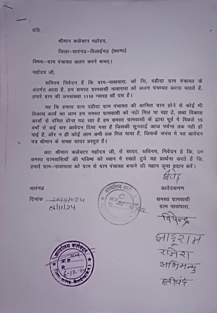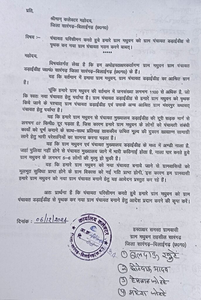 सारंगढ़ बिलाईगढ़// देशभर में पंचायत चुनावों को लेकर काफी उत्साह है, लेकिन सारंगढ़ बिलाईगढ़ जिले के दो गांव ने लोकतांत्रिक प्रक्रिया से किनारा करने का निर्णय लिया है। हम बात कर रहे हैं, ग्राम पंचायत दहिदा के आश्रित ग्राम नवापारा ..और , ग्राम पंचायत डड़ाईडीह के आश्रित ग्राम मधुवन.. जहां के ग्रामीणों ने पंचायत चुनावों के बहिष्कार की घोषणा की है। उनकी यह नाराजगी किसी राजनीतिक दल के खिलाफ नहीं, बल्कि उनकी मूलभूत मांग को लेकर है