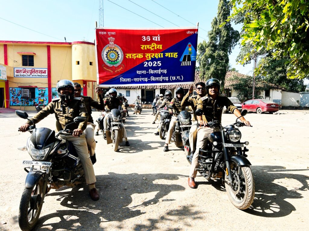 बिलाईगढ़ //पुलिस अधीक्षक पुष्कर शर्मा के द्वारा राष्ट्रीय सड़क सुरक्षा माह 2025 के अंतर्गत यातायात नियमों के संबंध में जानकारी एवं जागरूकता अभियान चलाने सभी थाना/ चौकी प्रभारी को निर्देशित किया गया है। इसी कड़ी में अतिरिक्त पुलिस अधीक्षक निमिषा पांडे तथा एसडीओपी श्री विजय ठाकुर के मार्गदर्शन में थाना प्रभारी प्रमोद यादव के नेतृत्व में आज दिनांक03/01/2025 को थाना बिलाईगढ़ पुलिस के द्वारा हेलमेट जागरूकता बाइक रैली का आयोजन किया गया ।