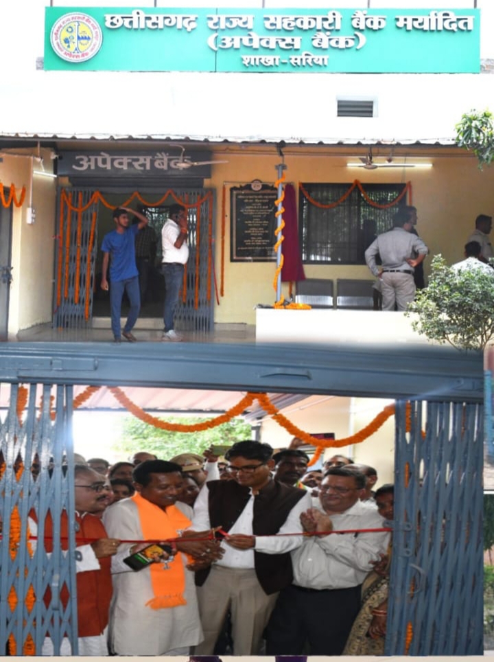 सारंगढ़-बिलाईगढ़, 7 सितंबर 2024/वित्त मंत्री ओ पी चौधरी, सांसद रायगढ़ लोकसभा और गणमान्य नागरिक जगन्नाथ पाणीग्राही ने फीता काटकर छत्तीसगढ़ राज्य सहकारी बैंक मर्यादित (अपेक्स) बैंक की नवीन शाखा सरिया का उद्घाटन किया। सरिया अंचल के किसानों की अपेक्स बैंक खोलने की बहु प्रतीक्षित मांग पूरी हुई है। उद्घाटन के पूर्व मुख्य अतिथि ओ पी चौधरी सहित अतिथियों ने वीर हनुमान की मूर्ति, किसान की मूर्ति और भगवान श्री गणेश की मूर्ति का पूजा अर्चना किया।