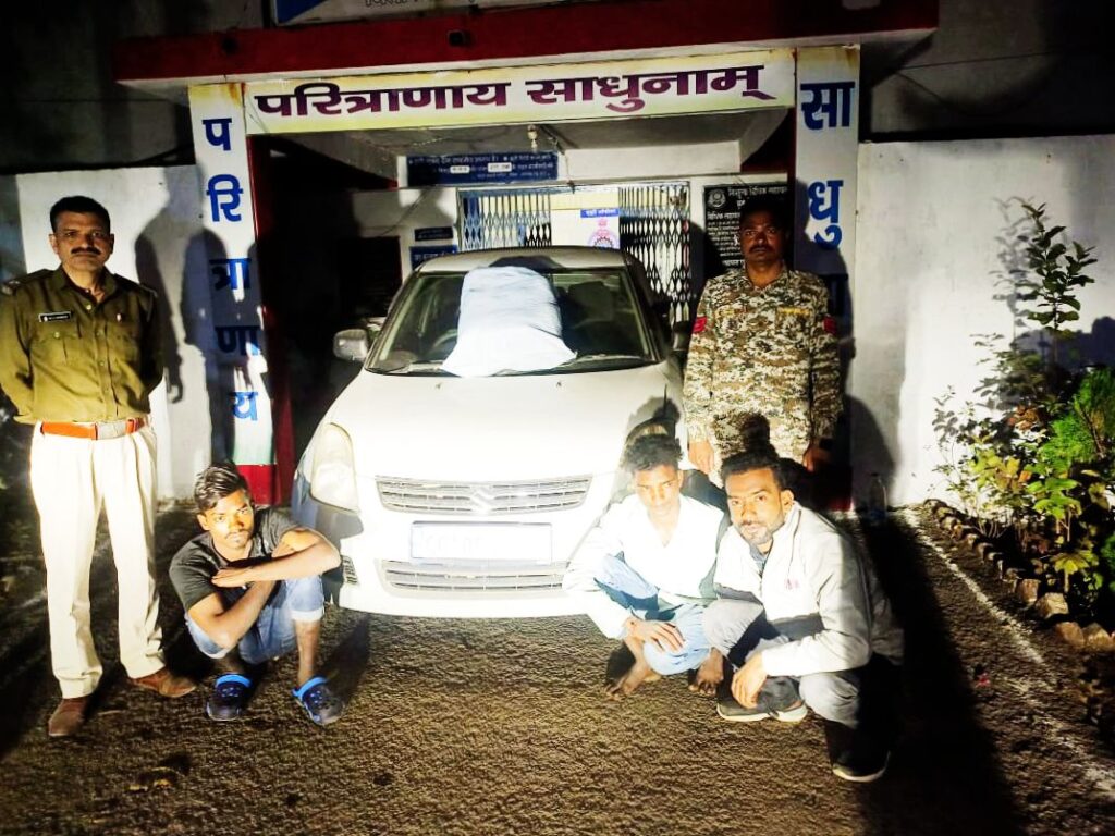 सारंगढ़ बिलाईगढ़ // पुलिस अधीक्षक महोदय सारंगढ बिलाईगढ़ (श्री पुष्कर शर्मा) के द्वारा जिले के सभी थाना/चौकी प्रभारियों को जुआ सट्टा शराब अवैध मादक पदार्थ गांजा में संलिप्त व्यक्त्तियों के उपर कड़ी से कड़ी कार्यवाही करने निर्देशित किया गया है। इसी कड़ी में श्रीमान पुलिस अधीक्षक महोदय के निर्देशन में तथा श्रीमान् अति० पुलिस अधीक्षक महोदय सारंगढ़-बिलाईगढ़ (श्रीमती निमिषा पांडेय) एवं श्रीमान् उप पुलिस अधीक्षक महोदय सारंगढ़ (श्री अविनाश मिश्रा) के कुशल मार्गदर्शन में दिनांक 11.01.2025 के दोपहर करीबन 12.50 बजे घटनास्थल ग्राम कंचनपुर बेरियर मेन रोड पर मुखबीर की सुचना पर ओडिसा राज्य से कचनपुर सरिया होते डमरा जिला सक्ती की ओर जा रहे एक सफेद रंग के मारुति सुजुकी स्वीफ्ट कार क० सी०जी० 10 ई०एम० 1400 को घेराबंदी कर रोका गया जो वाहन में सवार हेमानंद सोना उर्फ राजन सुना पिता कृपाराम सुना उम 25 वर्ष ग्राम तेलीपाली थाना अबाभौना जिला बरगढ़ उड़ीसा 2 देवा विश्वकर्मा पिता श्री राम विश्वकर्मा जाति लोहार उम्र 19 वर्ष ग्राम नवागांत थाना लोहारा जिला बेमेतरा छत्तीसगढ़ को रोककर उपरोक्त कार के सीट पीछे एक गुप्त चेम्बर मिला जिसकी तलाशी लेने पर उपरोक्त चेम्बर के अंदर कुल 10 पैकेट हरा, सफेद प्लास्टिक पन्नी जो खाखी रंग के टेप से लपेटा हुआ जिसके भीतर अवैध मादक पदार्थ गांजा रखा हुआ मिला जिसे आरोपियों के पेश करने गवाहों के समक्ष बरामद कर जप्त किया गया साथ ही उनके द्वारा उपयोग एक मोबाईल को भी जप्त किया गया। आरोपियों से बरामद कुल 10 पैकेट मादक पदार्थ गाजा को गवाहों के समक्ष तौल कराया गया जो तौल करने पर प्रत्येक पैकेट करीबन 01-01 किलोग्राम का होना पाया गया जो कुल 10 पैकेट में पन्नी सहित जुमला वजन 10 किलोग्राम मादक पदार्थ गाजा कीमती करीबन 100000/ (एक लाख रू.) का होना पाया गया। आरोपियो का कृत्य अपराध सदर धारा 20 ‘B’ NDPS ACT का अपराध घटित करना पाये जाने से उक्त गांजा एवं घटना में प्रयुक्त वाहन, एक मोबाईल हेडसेट जमला कीमती 635000रू0 को NDPS ACT के तहत गवाहों के समक्ष मुताबिक जप्ती पत्रक के जप्त कर कब्जा पुलिस लिया जाकर आरोपियों के विरूद्ध थाना सरिया में अपराध क0-09/2025 धारा 20 ‘B’ NDPS ACT का अपराध पंजीबद्ध कर मामला विवेचना लिया जाकर आरोपीयों को गिरफ्तार किया जाकर उनका मेमोरेण्डम कथन लिया गया घटनास्थल से फरार आरोपी श्याम कुमार चौहान पिता अमृतलाल चौहान उम्र 21 वर्ष ग्राम परसी थाना मालखरौदा जिला शक्ति छत्तीसगढ़ भागने पर पीछा कर उपरोक्त आरोपीयों को भी विधिवत् गिरफ्तार किया गया है l