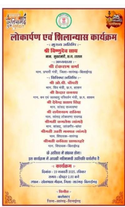 सूरज तिवारी (कांग्रेस वरिष्ठ नेता )- भाजपा के इशारे पर जिला प्रशासन जो काम कर रही है उसकी हम कड़ी निंदा करते है जहाँ भी भूमि पूजन होता है या शिला न्यास होता है उसमे वहां के स्थानीय जन प्रतिनिधि का नाम रहता है आप सबको याद दिला दू नया रायपुर मे भूमि पूजन और लोकार्पण कार्यक्रम था जिसमे दो सरपंच का नाम ससम्मान के साथ स्थान दिया गया था मंच मे भी स्थान दिया गया था लेकिन सारंगढ़ मे खूब अपमान किया जा रहा जन प्रतिनिधियों का जिसकी हम सब कांग्रेस दल कड़ी निंदा करते है मुख्यमंत्री ने मंच से अपने उद्बोधन मे बाकायदा नाम लिया बहुत सुलझे नेता है ओ बखूबी समझते है नाम लिया लेकिन यहाँ भाजपा के कुछ नेताओं ने कलेक्टर पर दबाव बनाकर काम कर रही जो बहुत ही निंदनीय है