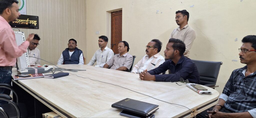 सारंगढ़ बिलाईगढ़,// 3 फरवरी 2025/ नगरीय निकाय एवं त्रि-स्तरीय पंचायत चुनावों में शत प्रतिशत मतदान कराने के उद्देश्य से राज्य निर्वाचन आयोग के निर्देश पर ईवीएम (इलेक्ट्रॉनिक वोटिंग मशीन) के उपयोग के संबंध में कलेक्ट्रेट सारंगढ़ में मीडिया कार्यशाला का आयोजन किया गया, जिसमें उप जिला निर्वाचन अधिकारी एस के टंडन, ईडीएम गंगाधर विश्वकर्मा, विनोद बंजारे, जिला मास्टर ट्रेनर चूड़ामणि गोस्वामी, पत्रकार यशवंत सिंह ठाकुर, भरत अग्रवाल, ओंकार केशरवानी, देव कुमार जाटवर उपस्थित थे।