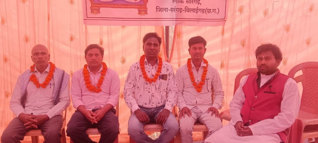 सारंगढ़ बिलाईगढ़ //ब्लॉक सारंगढ़ ग्राम पंचायत उल्खर में मानिकपुरी पनिका समाज का 24/01/2025 को ब्लॉक सारंगढ़ के मानिकपुरी पनिका समाज का निर्वाचन हुआ था । जिसमें निर्वाचित हुए पदाधिकारियों का भव्य शपथ ग्रहण समारोह 05/02/2025 को ग्राम पंचायत उल्खर में सम्पन्न हुआ।जिसमें मानिकपुरी पनिका समाज के लोगो ने बढ़ चढ़ कर भाग लिया ।उपस्थित समाज के लोगों ने नवनिर्वाचित पदाधिकारियों को बधाई एवं पुष्प माला से भव्य स्वागत किया।शपथ दिलाने सभा के अध्यक्ष श्री आरती दास जी एवं सभापति श्री सनातन महंत जी ने संविधान के नियमानुसार सभी निर्वाचित हुए पदाधिकारियों को एक एक कर शपथ दिलाया श्री अगर दास दीवान जी ब्लॉक सारंगढ़ अध्यक्ष पद,श्री अनिल महंत जी सचिव पद,इंदल दास कोषाध्यक्ष,लक्ष्मणमहंत उपाध्यक्ष,पीताम्बर दास सह सचिव पदो का शपथ लिया।शपथ ग्रहण समारोह में उपस्थित अन्य ब्लॉक के पदाधिकारी गण एवं ब्लॉक सारंगढ़ के मानिकपुरी पनिका समाज के सैकड़ों के संख्या में उपस्थित रहे।ब्लॉक सारंगढ़ के नवनिर्वाचित अध्यक्ष अगर दास दीवान जी ने सभा को संबोधित किया।अपने चंद शब्दों में मानिकपुरी पनिका समाज से अपील करते हुए समाज में खान पान नशा मुक्त हो समाज एक सूत्र में बंधे के एकता बनाए रखे।भिन्न भिन्न में न बटे अपने बच्चों के भविष्य के प्रति पढ़ाई में ज्यादा से ज्यादा जोर दे उच्च शिक्षा प्राप्त हो तभी समाज एक अच्छा उज्जवल भविष्य होगा ।और विकास होगा।उपस्थित समाज के लोगों को धन्यवाद आभार व्यक्त करते हुए अपने बनी को विराम दिया।साहेब बंदगी साहेब।
