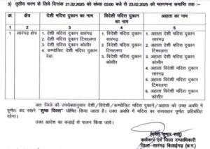 // 20 फरवरी 2025/पंचायत आम निर्वाचन के तृतीय चरण का चुनाव जिले के सारंगढ़ ब्लॉक में होगा। कलेक्टर एवं जिला दंडाधिकारी धर्मेश कुमार साहू ने मतदान और मतगणना को ध्यान में रखते हुए सारंगढ़ क्षेत्र के सारंगढ़, रेड़ा, कोसीर और टिमरलगा में संचालित देशी-विदेशी मदिरा दुकान, कंपोजिट मदिरा दुकान, अहाता देशी-विदेशी मदिरा दुकान को आगामी 21 फरवरी के अपराह्न 3 बजे से 23 फरवरी को मतगणना समाप्ति तक बंद रखने के लिए आदेश जारी किया है। इस दौरान इन क्षेत्रों में मदिरा खरीदी, बिक्री, परिवहन पूर्णतः प्रतिबंधित रहेगा।