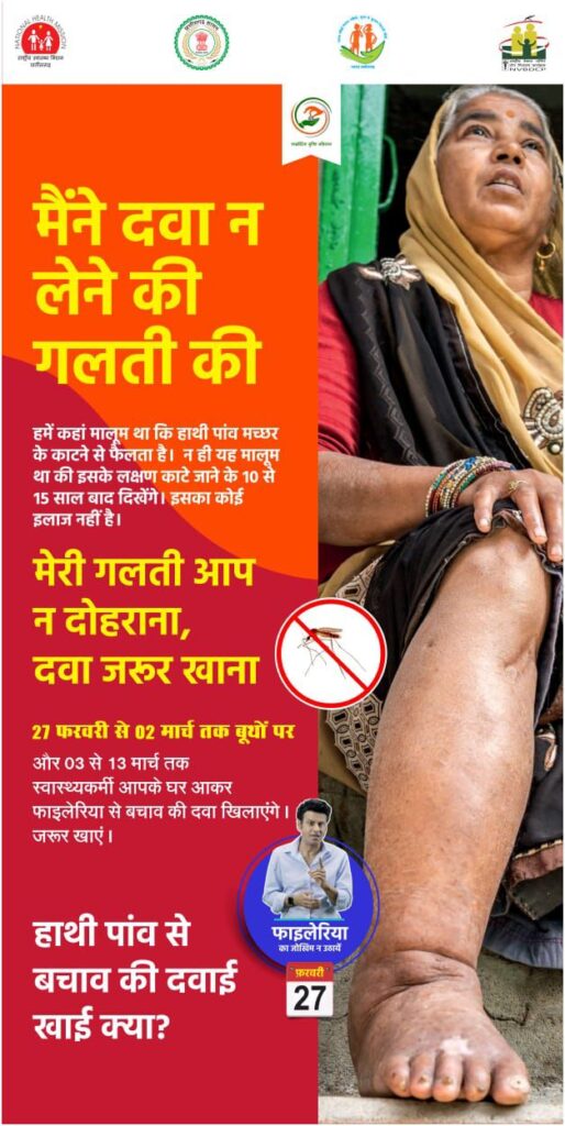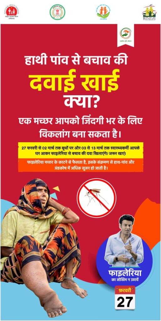 सीएमएचओ डॉ एफ आर निराला ने जानकारी दी कि फाइलेरिया (हाथी पांव) बीमारी मच्छर के काटने से होता है। इसलिए मच्छर के बारे में जानना जरूरी है, उसके काटने से कितने प्रकार की मच्छर जनित बीमारियां होती है। मच्छर पनपते कैसे है और बीमारियां फैलाती कैसे है। इसके बारे में जनजागरुकता फैलाना ही इसका रोग की रोकथाम का एक कारक है। मच्छर जनित रोगो में मुख्यतः मलेरिया, फाइलेरिया , डेंगू , चिकनगुनिया जीका , जापानिस इंसेफेलाइटिस आदि बीमारियां होती है। यह बीमारी जानलेवा भी हो सकता है। मच्छर जनित रोगों की रोकथाम, नियंत्रण और समुदाय को जागरूक करते हुए उनकी सहभागिता बढ़ाना ही लक्ष्य होता है। स्कूलों में छात्र छात्राओं को जागरूक करना, जहां मच्छरों के काटने से होने वाले रोगी के बारे में बताया जाता ही है वही इनसे कैसे बचे इससे भी अवगत कराया जाता है। स्कूली बच्चों में सहभागिता बढ़ाने के लिए समय समय पर क्विज प्रतियोगिता , निबंध लेखन, रैली का आयोजन, नारे लेखन जैसे विषयों पर चर्चा की जाती है और बच्चो की जागरूक की जाती है। गावों में समुदाय की बैठके करके , महिलाओं की समूह के साथ चर्चा करके , ग्रामीण स्वास्थ्य समिति की बैठक करके आयुष्मान समिति की बैठकों में भी चर्चा करके सबको अवगत कराई जाती है। इन समूहों से चर्चा मतलब सबको स्वास्थ्य शिक्षा देना होता है। गृह भेट करना ,घर की मुआयना करके देखना कही मच्छर पनपने के अनुकूलता तो नही है,देखना और घर वालो को समझना। आमतौर पर घर में या घर के आसपास बहुत से ऐसे जगह मिल जाता है, जहां मच्छर अपने अंडे देती है ऐसे स्थानों में पुराने बर्तन के, पुराने टायर, गमले , कूलर में बहुत दिनों तक पानी भरा हुआ रखना, गद्दे, पोखर, बोरिंग के पास या नल के पास पानी का जमा हुआ रहना मच्छर अक्सर ऐसे ही स्थिर पानी की खोज में रहते है। मच्छर के प्रजनन के लिए जमा हुआ पानी या हल्का मंद गति से बहता हुआ पानी ही पसंदीदा जगह होता है। रुका हुआ पानी की सतह में पानी साफ होता है। मच्छर दो प्रकार के होते है एक नर मच्छर और दूसरा मादा। मच्छर मादा मच्छर नर से साइज में कुछ बड़ा होता है और नर की तुलना में मादा ज्यादा दिन तक जीवित रहता है। मादा मच्छर खून पीता है और अपने वजन से तिगुना वजन तक खून को पिता है, जब तक उनका पेट नही भरता तक तक मादा मच्छर काटते रहता है और खून पीते रहता है। नर मादा की मिलन उड़ते समय हवा में होती है। मादा मच्छर के कारण ही मच्छर जनित रोग होता है। मादा मच्छर अपने अंडे रुके हुए पानी में देता है। मच्छर की चार अवस्थाएं होती है जिसमे अंडे, प्यूपा, लार्वा और एडल्ट मच्छर होता है। अंडे देने के बाद मच्छर 2 सप्ताह के भीतर एडल्ट हो जाता है। नर मच्छर एडल्ट होते ही प्रजनन करना प्रारंभ कर देता है और सप्ताह भर में मर जाता है जबको मादा
