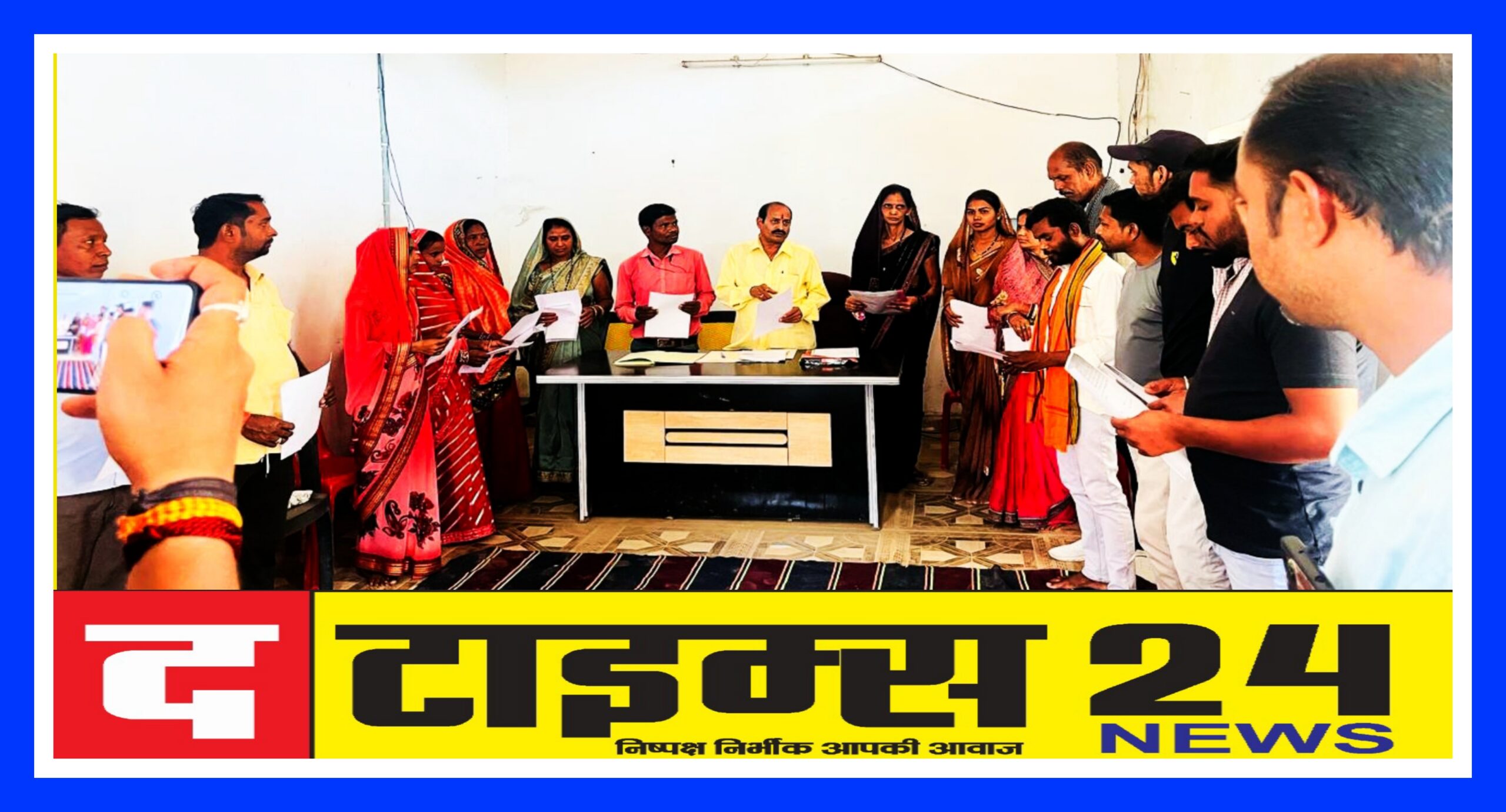 गांव के सभी वार्ड एवं विकास के लिए योजनाओं का गांव के सभी वर्गों तक पहुंचने का संभव मदद करते रहेंगे साथ ही साथ गांव की विकास कार्यों में पूरी ईमानदारी से कार्य निभाने का संकल्प लिए l शपथ ग्रहण में नव निर्वाचित सरपंच श्रीमती टिकेश्वरी सिंह राजपूत, पंच रमाकांत सोनवानी,श्रीमती कविता लहरें, श्रीमती रेखा महंत ,रोशन लहरें,श्रीमती चमेली बाई यादव, विजय दास,श्रीमती पदमा पटेल,श्रीमती चंद्रकला बरेठ,संतोष पटेल,राजकुमार सिदार, तुकलाल ,सदानंद सिदार ,एवं गांव के वरिष्ठ जन उपस्थित रहे एवं नव निर्वाचित सरपंच समस्त पंचों को बधाइयां प्रेषित किए