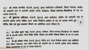 सारंगढ़ बिलाईगढ़//सारंगढ़ बिलाईगढ़ जिले के कलेक्टर धर्मेंद्र साहू जी बदले गए तथा सारंगढ़ बिलाईगढ़ के नए कलेक्टर होंगे डॉ.संजय कन्नौजे तथा छत्तीसगढ़ प्रदेश के कई IAS अधिकारियों की ट्रांसफर लिस्ट जारी किया गया है देखिए किसको कहां का कलेक्टर बनाया गया है
