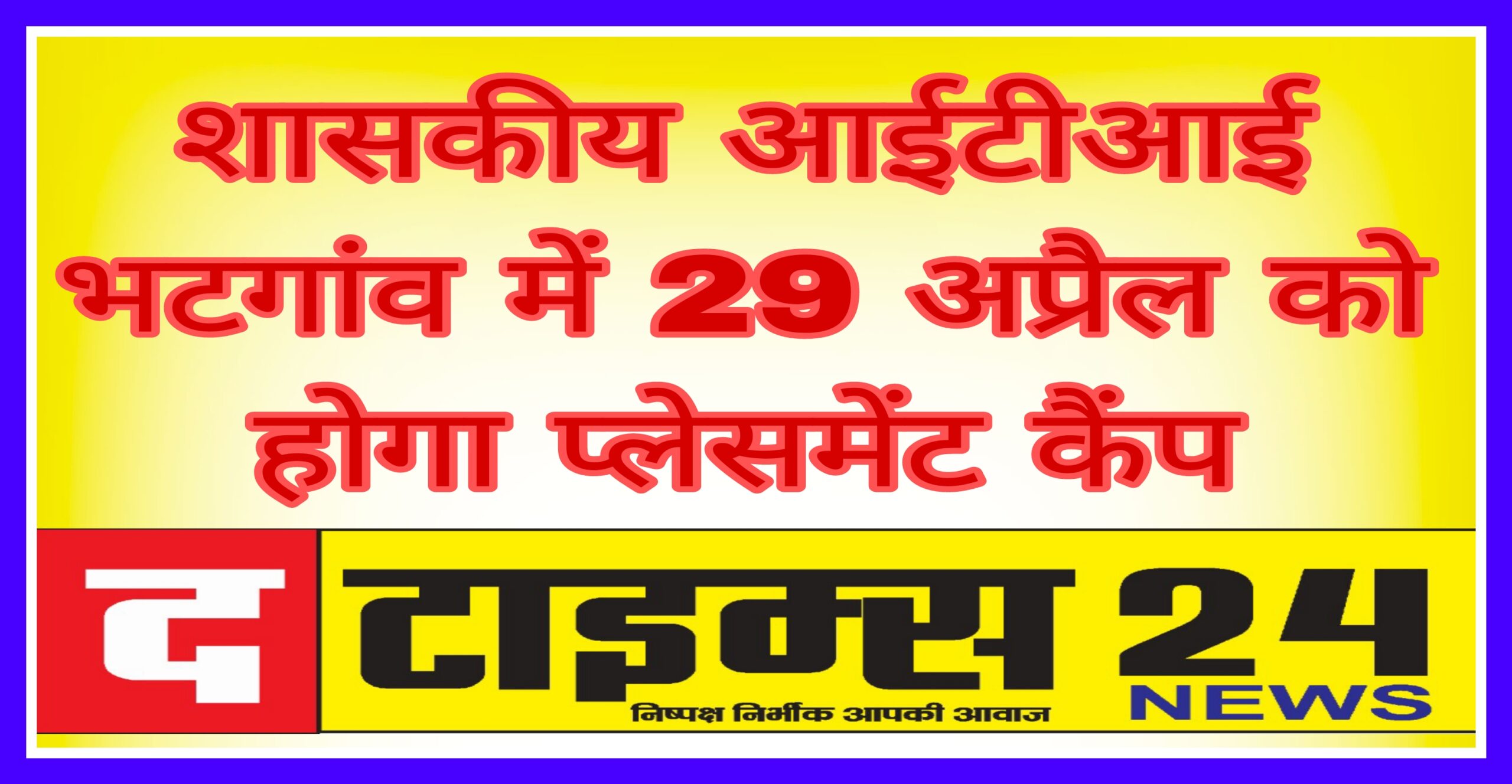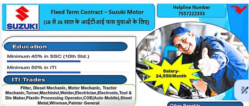 //28 अप्रैल 2025/राज्य शासन द्वारा विभिन्न ट्रेडों में आईटीआई उत्तीर्ण युवाओं के लिए रोजगार का सुनहरा अवसर प्रदान किया गया है। सुजुकी मोटर गुजरात द्वारा 300 पदों पर नियुक्ति हेतु शासकीय औद्योगिक प्रशिक्षण संस्था (आईटीआई) भटगांव में 29 अप्रैल मंगलवार को सुबह 9.30 बजे प्लेसमेंट कैंप का इंटरव्यू आयोजित किया गया है। संस्था के प्राचार्य ने बताया कि इसमें 18 से 26 वर्ष के युवा साक्षात्कार में भाग ले सकेंगे। साथ ही इसमें 24 हजार 550 रुपए की मासिक वेतन एवम अन्य सुविधाएं कंपनी द्वारा दी जाएगी। इस संबंध में जानकारी के लिए मोबाईल नंबर 8770483564, 9770676439 पर संपर्क कर सकते हैं।