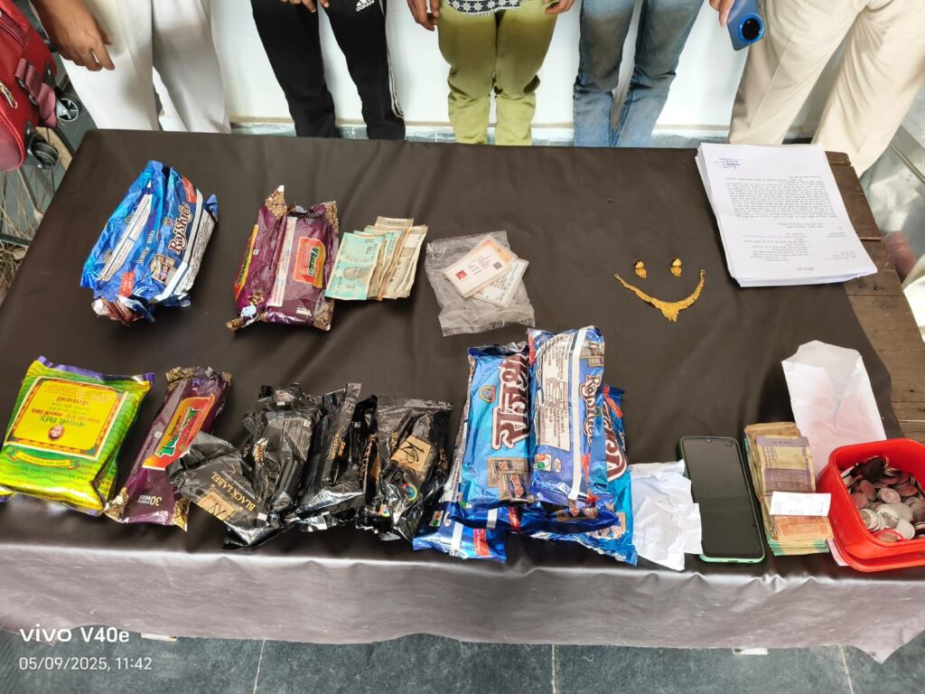 (3.) दिनांक 21.04.2025 क़ो अमित किराना दुकान से नगदी रकम व राजश्री गुटखा,