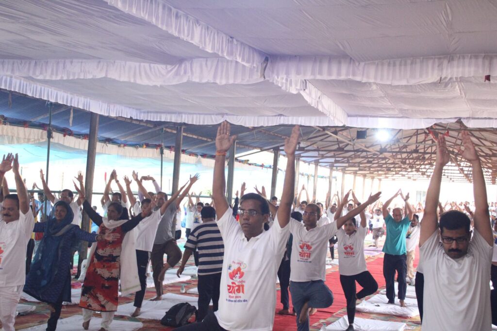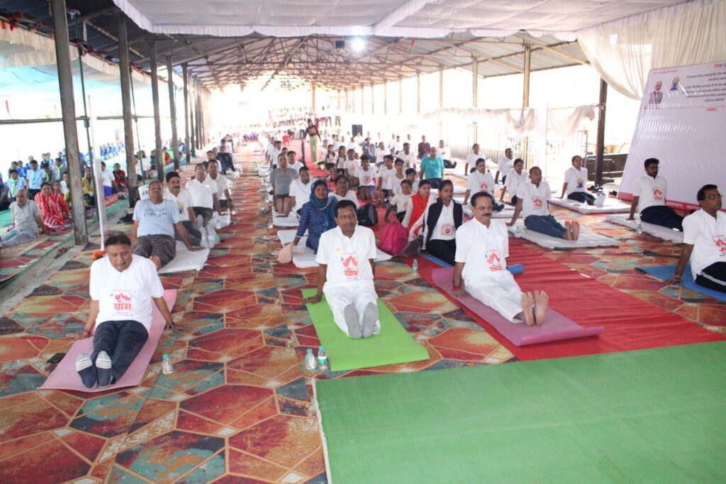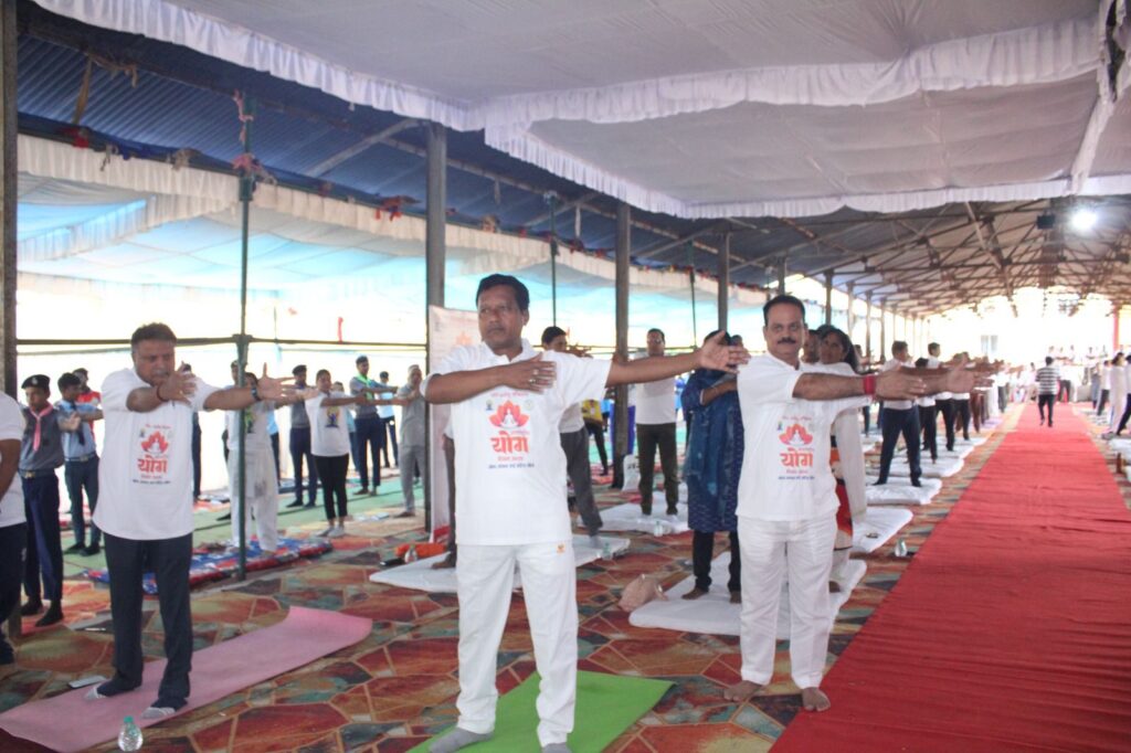 सारंगढ़ बिलाईगढ़ //21 जून 2025/ लोकसभा रायगढ़ के सांसद राधेश्याम राठिया के मुख्य आतिथ्य एवं विशिष्ट अतिथि जिपं अध्यक्ष संजय भूषण पांडे की उपस्थिति में एक पृथ्वी एक स्वास्थ्य थीम पर कृषि उपज मंडी परिसर सारंगढ़ में जिला स्तरीय योग दिवस के कार्यक्रम का आयोजन किया गया। इसमें जिले के जनप्रतिनिधि, पत्रकारगण विभिन्न विभागों के अधिकारी कर्मचारी, स्कूल, कॉलेज, भारत स्काउट, जूनियर रेडक्रॉस, एनएसएस आदि के सदस्य बड़ी संख्या में उपस्थित थे।