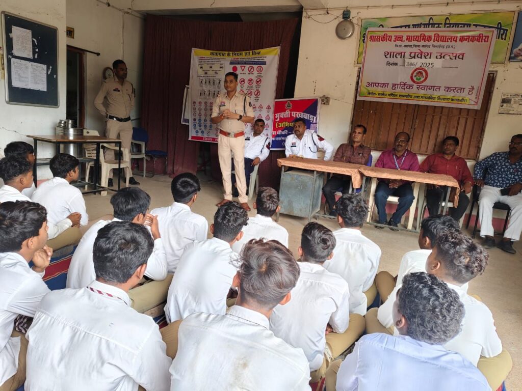 सारंगढ़ बिलाईगढ़ //श्रीमान पुलिस अधीक्षक महोदय सारंगढ़ आंजनेय वार्ष्णेय के द्वारा नशा मुक्ति, यातायात जागरूकता, साइबर जागरूकता के सम्बन्ध में चलाए जा रहे अभियान के तहत आज दिनांक 26/06/2025 को पुलिस चौकी कनकवीरा एवं यातायात सेल सारंगढ़ टीम के द्वारा अतिरिक्त पुलिस अधीक्षक निमिषा पांडे एवं अनुविभागीय अधिकारी सारंगढ़ स्नेहिल साहू के मार्गदर्शन मे शासकीय उच्चतर माध्यमिक विद्यालय कनकबीरा में स्कूल के छात्र छात्राओं एवं शिक्षकों को नशापान नहीं करने के सम्बन्ध में समझाइश देते हुए नशे से होने वाले दुष्प्रभाव के बारे में बताया गया तथा अपने परिजनों को नशा से दूर रहने बताया गया एवं भारत सरकार द्वारा नशा मुक्ति के संबंध में शपथ लेकर ऑनलाइन प्रमाण पत्र प्राप्त करने हेतु निर्देश किया गया।