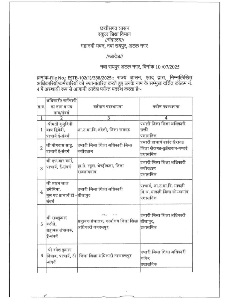 CHHATTISGARH, sarangarh, SARANGARH BILAIGARH शिक्षा विभाग में बड़ा फेर बदल किया गया Milan das MahantJuly 10, 2025July 10, 2025 खबर को शेयर करें सारंगढ़ बिलाईगढ़//छत्तीसगढ़ के शिक्षा विभाग में बड़ा फेर बदल किया गया हैजिसमें सारंगढ़ बिलाईगढ़ जिला में जिला शिक्षा अधिकारी जोइधा राम डहरिया को पदस्थ कियागया है Milan das Mahant