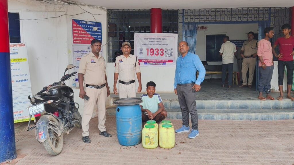 सारंगढ़ बिलाईगढ़ //पुलिस अधीक्षक श्री आँजनये वार्ष्णेय, अति0 पुलिस अधीक्षक श्रीमती निमीषा पाण्डेय एवं एसडीओपी श्रीमती स्नेहिल साहू के द्वारा अवैध शराब बिक्री पर रोकथाम हेतु लगातार निर्देशित किये जाने पर थाना प्रभारी कोतवाली निरीक्षक कामिल हक के कुशल मार्ग दर्शन में थाना सिटी कोतवाली सारंगढ़ के पुलिस स्टाफ के द्वारा अवैध शराब बिक्री करने वाले व्यक्ति के विरूद्ध कार्यवाही की गई।अप0क्रं0 355/2025 धारा- 34(2),59(क) आबकारी एक्ट में दिनांक- 20.07.2025 को जरिये मुखबिर सूचना मिला कि ग्राम फर्सवानी में नदी किनारे खरदरहाखार में भारी मात्रा में अवैध शराब बिक्री करने हेतु रखा है कि सूचना पर हमराह स्टाफ एवं गवाहान के घटना स्थल ग्राम फर्सवानी नदी किनारे खरदरहाखार पहुंच कर घेराबंदी कर रेड कार्यवाही किये जिसमे मौके पर आरोपी शनी कुमार खड़िया निवासी फर्सवानी मिला व अन्य दो आरोपी फरार हो गये तथा जिसके कब्जे से 04 नग पीला कलर की प्लास्टिक डिब्बा 15 लीटर क्षमता वाली में भरी हुई 60 लीटर एवं नीला कलर के प्लास्टिक डिब्बा 50 लीटर क्षमता वाली में 50 लीटर हाथ भटटी कच्ची महुआ शराब कुल 110 लीटर किमती 22000 रू0 को गवाहों के समक्ष मुताबिक जप्ती पत्रक के जप्त कर कब्जा पुलिस लिया गया मामला अजमानतीय होने से आरोपी शनी कुमार खड़िया विधिवत गिरफ्तार कर न्यायिक रिमाण्ड पर भेजा गया। दो अन्य फरार आरोपी का पता तलाश किया जा रहा है