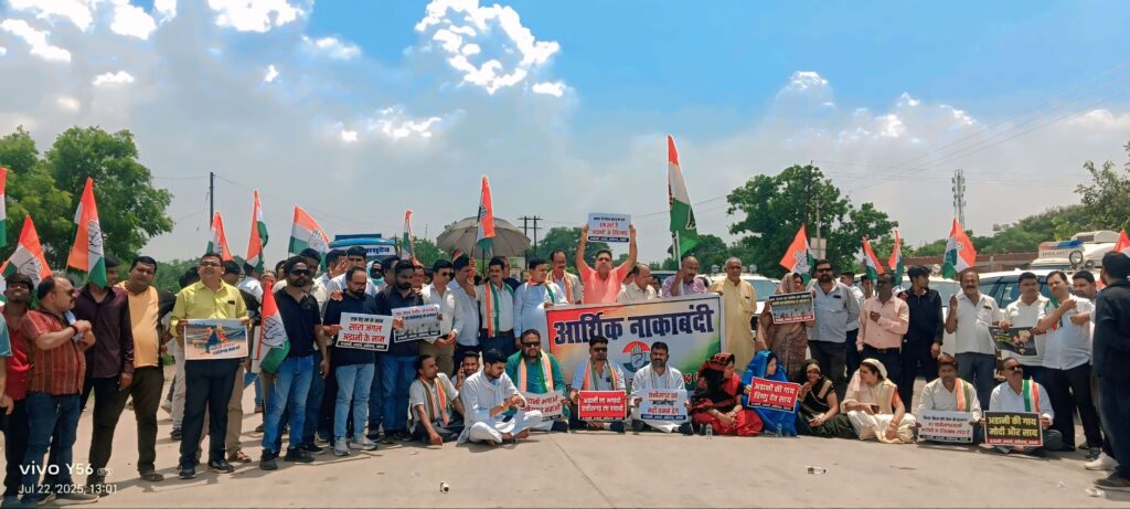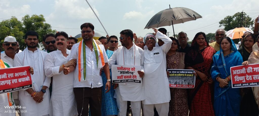 नेशनल हाईवे रायगढ़ पर रोड पर कांग्रेस का चक्काजाम
