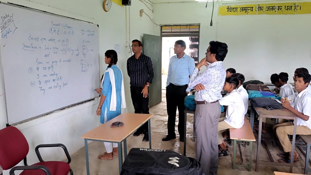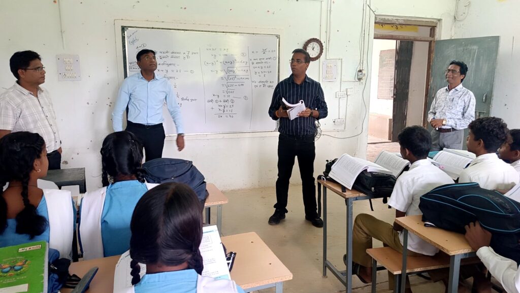 //कलेक्टर डाॅ. संजय कन्नौजे ने सोमवार को दोपहर में सारंगढ़ विकासखंड के ग्राम पचपेड़ी, सुलोनी और उलखर स्थित स्कूलों का आकस्मिक निरीक्षण किया। पचपेड़ी के प्राथमिक शाला भवन और संकुल केन्द्र भवन का कलेक्टर ने निरीक्षण किया और बरसात में भवन की स्थिति का जायजा लेते हुए बच्चों की पढ़ाई का अवलोकन किया। इसी प्रकार हाईस्कूल सुलोनी में कलेक्टर ने कक्षाओं के संचालन का अवलोकन किया। कलेक्टर डाॅ. कन्नौजे ने कक्षा नवमीं में स्कूली बच्चों को काल (टेन्स) पढ़ाया। उन्होंने प्रेजेन्ट सिम्पल टेन्स में बच्चों को ‘‘मैं स्कूल जाता हूं’’ को विस्तार से समझाया। इसी प्रकार कक्षा दसवीं में बच्चों को गणित के सवाल कैसे हल किया जाता है, को ब्लैक बोर्ड में पढ़ाया।