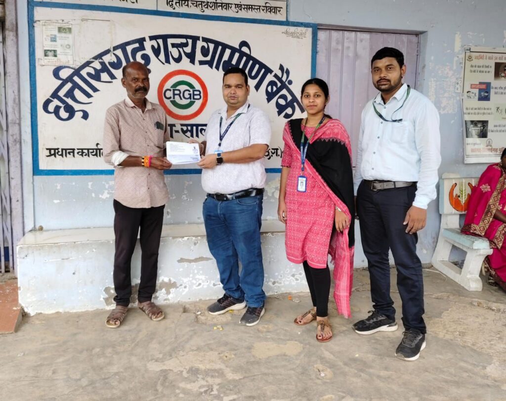 सारंगढ़ बिलाईगढ़, 31 जुलाई 2025//प्रधानमंत्री सुरक्षा बीमा योजना अंतर्गत मृतक अमित चौहान के नॉमिनी देवनारायण चौहान को बीमा क्लेम राशि दो लाख रुपए का चेक छत्तीसगढ़ राज्य ग्रामीण बैंक शाखा सालर के द्वारा प्रदान किया गया। सुरेश दमके लीड बैंक एसबीआई के अधिकारी ने जानकारी दी कि, प्रधानमंत्री सुरक्षा बीमा योजना से 18 से 70 वर्ष का व्यक्ति जुड़ सकता हैं। प्रधानमंत्री सुरक्षा बीमा योजना से जुड़ने पर 20 रुपये प्रति वर्ष की राशि प्रीमियम के तौर पर धारक को देनी होगी।
