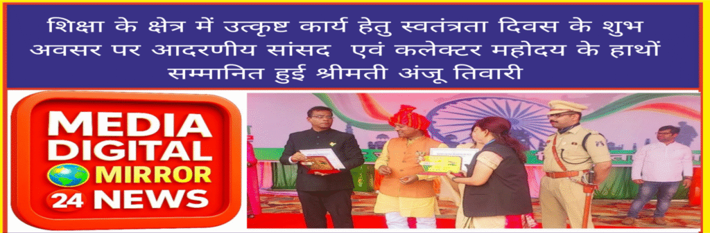 सारंगढ़ बिलाईगढ़ //ब्राह्मण समाज के लिए आज का यह स्वतंत्रता दिवस का पर्व बहुत ही गौरव पूर्ण रहा। सारंगढ़ बिलाईगढ़ जिले के ब्राह्मण महिला तदर्थ समिति की सचिव श्रीमती अंजू तिवारी, शिक्षक, शासकीय पूर्व माध्यमिक शाला बिरसिंगडीह आज स्वतंत्रता दिवस के शुभ अवसर पर आदरणीय सांसद, एवं कलेक्टर महोदय के हाथों सम्मानित हुई।