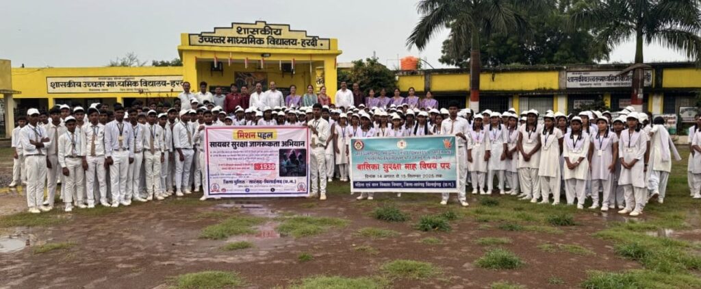 सारंगढ़ बिलाईगढ// पुलिस अधीक्षक श्री आंजनेय वार्ष्णेय के आदेशानुसार अतिरिक्त पुलिस अधीक्षक श्री निमिषा पांडे एवं डीएसपी श्री अविनाश मिश्रा के मार्गदर्शन में साइबर सेल सारंगढ़ के स उ नि रामकुमार मानिकपुरी एवं साइबर टीम एवं महिला बाल विकास विभाग के श्रीमती पायल साहू, मीनू पटेल धनीराम द्वारा आज ” मिशन पहल अभियान “के तहत शासकीय हायर सेकेंडरी स्कूल ग्राम हरदी में साइबर जागरूकता एवं बाल अपराध पर कार्यक्रम आयोजन किया गया।