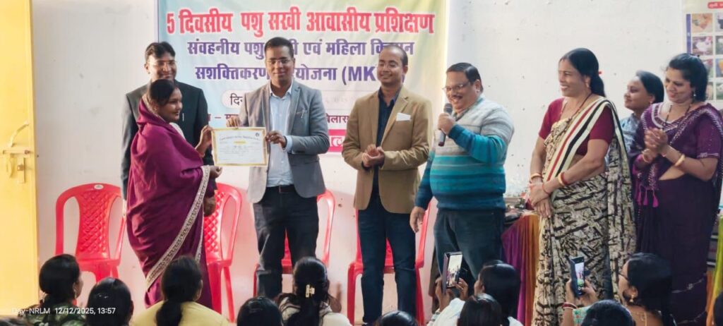 सारंगढ़-बिलाईगढ़, 12 दिसंबर 2025//कलेक्टर डॉ संजय कन्नौजे, अपर कलेक्टर प्रकाश सर्वे, जिला पंचायत सीईओ इंद्रजीत बर्मन, उप संचालक पशुधन महेन्द्र पाण्डेय की गरिमामयी उपस्थिति में 5 दिवसीय जिला स्तरीय आवासीय ‘पशु सखी’ कार्यशाला का सफलतापूर्वक समापन किया गया। इस अवसर पर वरिष्ठ अधिकारियों द्वारा सभी प्रतिभागी पशु सखियों को प्रशिक्षण पूर्णता प्रमाण पत्र प्रदान किए गए और उनके उज्ज्वल भविष्य के लिए शुभकामनाएँ दी गईं।