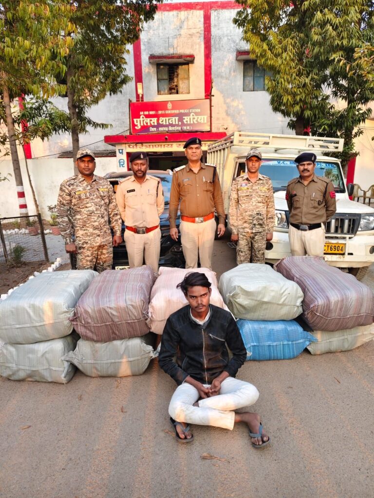 विवरण इस प्रकार है कि दिनांक 26/12/2025 को दौरान पेट्रोलिंग सूचना मिला कि उड़ीसा तरफ से पिकअप क्र UP 64 CT 6904 में भारी मात्रा में गांजा आ रहा है और सामने कार से पायलेटिंग किया जा रहा है कि सूचना पर खजूरिया तालाब सरिया पास सफेद रंग के पिकअप क्र सीजी UP 64 CT 6904 को घेराबंदी कर पकड़ा गया जिसमें से सब्जी कैरेट को हटाने पर अंदर दस बोरी में भरा कुल 300 किलो200ग्राम अवैध मादक पदार्थ गांजा मिला । पिकअप में सवार आरोपी राहुल कुमार से पूछताछ करने पर अपने अन्य 04 साथियों के साथ बलांगीर उड़ीसा से गांजा लेकर फतेहपुर उत्तरप्रदेश ले जाना बताया। पिक अप में मिले गांजा को गवाहों के समक्ष जप्त कर आरोपी राहुल कुमार राजपूत पिता रामविलास उम्र 22 वर्ष ग्राम बमरौली थाना हुसैनगंज जिला फतेहपुर ( उत्तरप्रदेश)के खिलाफ विधिवत् कार्यवाही करते हुए थाना सरिया में अप क्र 278/25 धारा 20 बी ndps एक्ट का अपराध दर्ज किया गया है । पिकअप गाड़ी के सामने पायलेटिंग कर रहे रेनॉल्ट कार क्र UP 71 BJ 9550 को भी जप्त किया गया है ।पायलेटिंग गाड़ी सवार में अन्य 04 आरोपियों की पतासाजी की जा रही है।