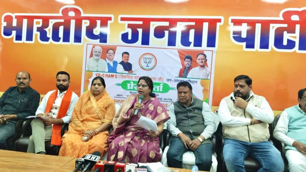 सारँगढ़ बिलाईगढ़// जिला भाजपा कार्यालय में प्रेस वार्ता आयोजित किया गया महासमुंद सांसद रूप कुमारी चौधरी ने प्रेस को सम्बोधित किया जिसमें सारँगढ़ – सारँगढ़ बिलाईगढ़ जिला भाजपा कार्यलय में प्रेस वार्ता आयोजित किया गया हर गरीब को रोजगार मिले और उसकी गरिमा का सम्मान हो। गरीब, जनजाति और पिछड़ा को रोजगार मिले, उसके लिए यह क़ानून आया है। ‘विकसित भारत 2047’ के राष्ट्रीय विजन के अनुरूप ग्रामीण विकास का नया ढांचा तैयार करना है। यह पूरा बिल महात्मा गांधी जी की भावना के अनुरूप है और राम राज्य की स्थापना के लिए लाया जा रहा है।