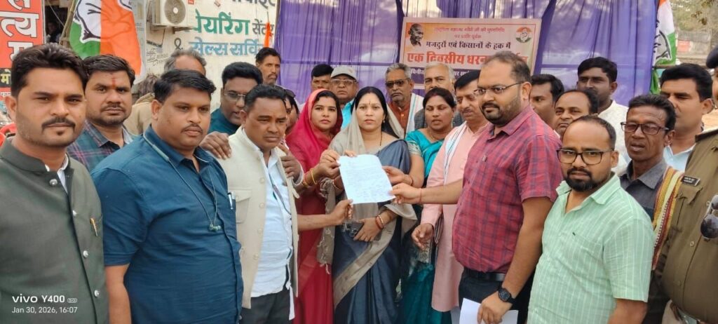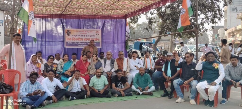 सारंगढ़ बिलाईगढ़//छत्तीसगढ़ प्रदेश कांग्रेस कमेटी के पीसीसी चीफ दीपक बैज के निर्देशानुसार आज प्रदेश भर के सभी जिला एवं ब्लॉक में कांग्रेस द्वारा धरना प्रदर्शन एवं चक्का जाम का आयोजन किया गया था, सारंगढ़ एवं ब्लॉक कांग्रेस कमेटी उल्खर कोसीर के द्वारा आज सारंगढ़ के भारत माता चौक में प्रदर्शन किया गया