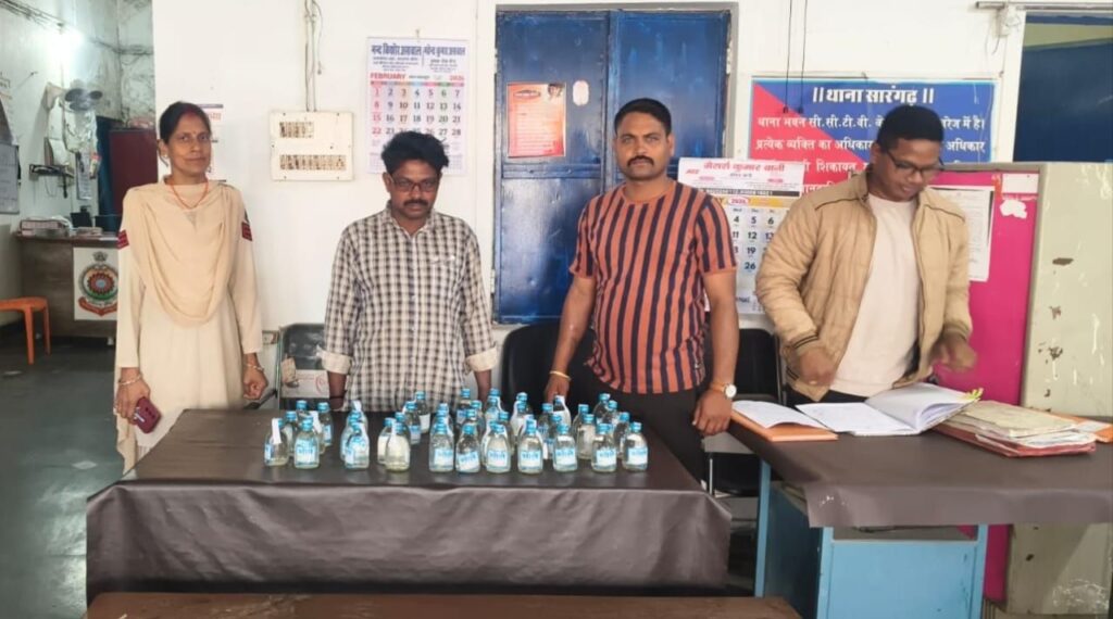 सारंगढ़ बिलाईगढ़ //पुलिस अधीक्षक श्री आंजनेय वार्ष्णेये,अति0 पुलिस अधीक्षक श्रीमती निमीषा पाण्डेय एवं एसडीओपी श्रीमती स्नेहिल साहू के द्वारा अवैध शराब बिक्री एवं परिवहन पर रोकथाम हेतु लगातार निर्देशित किये जाने पर थाना प्रभारी कोतवाली निरीक्षक कामिल हक के कुशल मार्ग दर्शन में थाना सिटी कोतवाली सारंगढ़ के द्वारा अवैध शराब बिक्री करने वाले व्यक्ति के विरुद्ध कार्यवाही कर गिरफ्तार करने में सफलता प्राप्त हुई।अप0क्रं0 63/2026 धारा-34(2)59(क) आबकारी एक्ट में दिनांक-08.02.2026 को मुखबिर से अवैध शराब बिक्री हेतु परिवहन करने की सूचना पर घटना स्थल ग्राम मुडपार हाईवे मेनरोड के पास हमराह स्टाफ एवं गवाहन के जाकर घेराबंदी कर रेड कार्यवाही किया जिसमे एक व्यक्ति को मोटर सायकल फैशन प्रो क्रमांक- सीजी-13 यूएफ-9103 मे पकड़ा गया जिसका नाम मोहन लाल चैहान पिता भगवतिया चैहान उम्र 46 वर्ष सा0 दानसरा थाना सारंगढ़ जिला सारंगढ़ बिलाईगढ़ छ0ग0 का निवासी होना पता चला जिसके मोटर सायकल में रखे प्लास्टीक थैला के अंदर 45 पाव देशी मदिरा शराब 180 एमएल वाली शीशी जुमला-8.100 लीटर कीमती- 3600 रू0 का पेश किया एवं परिवहन में उपयोग मोटर सायकल को हमराह स्टाफ एवं गवाहान के जप्त किया जाकर आरोपी को विधिवत् गिरफ्तार कर न्यायिक रिमाण्ड पर जेल भेजा गया।