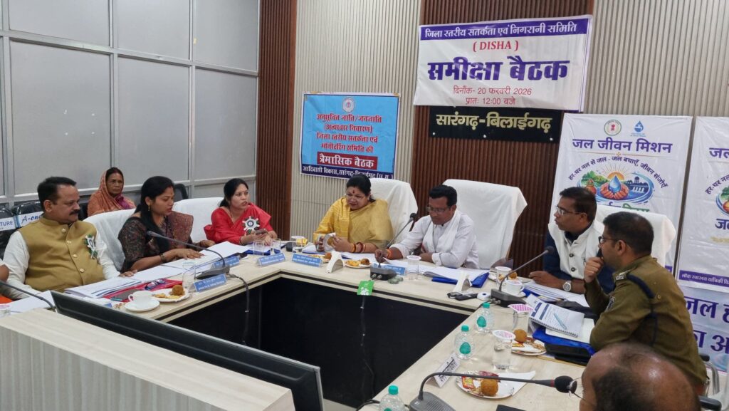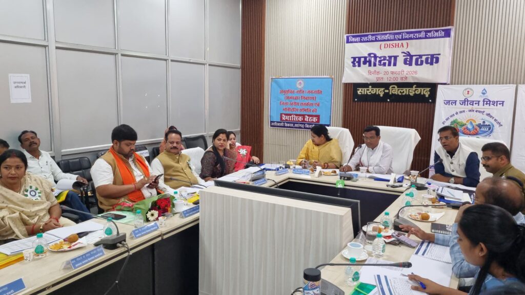 सारंगढ़ बिलाईगढ़, 20 फरवरी 2026// जिला स्तरीय सतर्कता एवं निगरानी समिति (दिशा) की समीक्षा बैठक सारंगढ़ कलेक्ट्रेट सभाकक्ष में आयोजित गई, जिसमें जिले में संचालित सभी योजनाओं के क्रियान्वयन की स्थिति, स्वास्थ्य, शिक्षा, पेयजल, सड़क आदि का रायगढ़ सांसद राधेश्याम राठिया ने सारंगढ़ अनुविभाग के लिए और जांजगीर चांपा सांसद कमलेश जांगड़े ने बिलाईगढ़ अनुविभाग के लिए समीक्षा किया।
