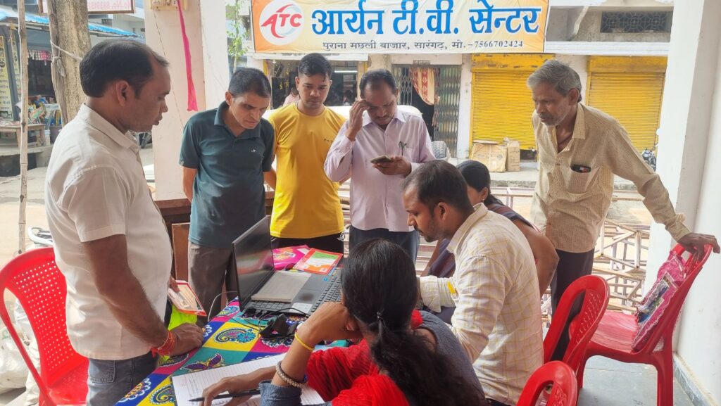 सारंगढ़ बिलाईगढ़ //कलेक्टर धर्मेश साहू के निर्देश और सीएमएचओ डॉ एफ आर निराला के मार्गदर्शन में नगरपालिका परिषद सारंगढ़ के सभी नागरिक का आयुष्मान कार्ड बनाने के उद्देश्य से सभी वार्डो में वृहद आयुष्मान कार्ड शिविर का आयोजन किया गया। इस शिविर में सभी नागरिकों को आयुष्मान कार्ड बनाने के लिए राशन कार्ड और आधार कार्ड की जानकारी अनिवार्य है। उल्लेखनीय है कि आयुष्मान कार्ड से पांच लाख रुपए का इलाज फ्री होगा।