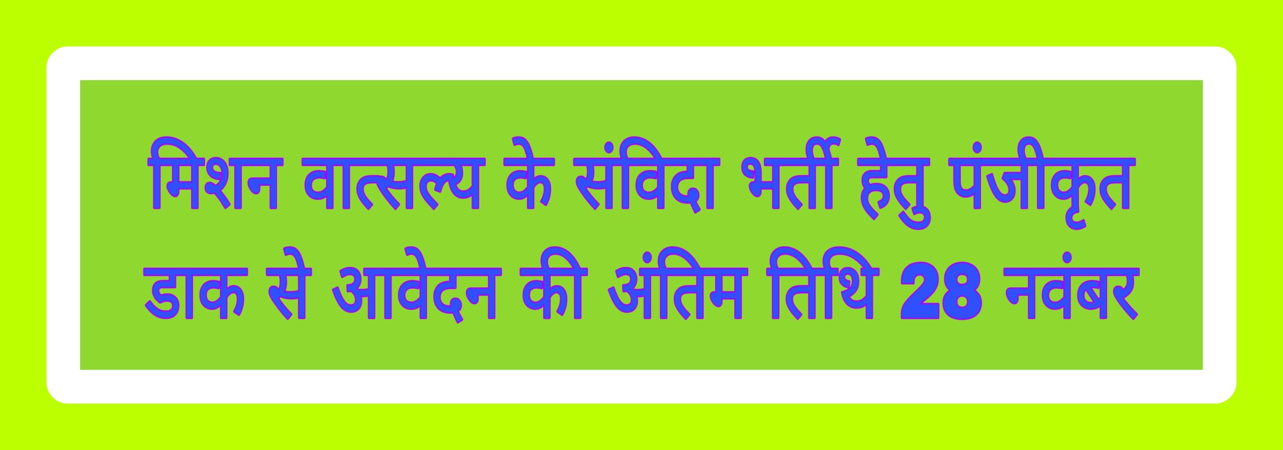 सारंगढ़ बिलाईगढ़, //महिला एवं बाल विकास विभाग के मिशन वात्सल्य अंतर्गत जिला बाल संरक्षण इकाई में संविदा भर्ती के लिए आवेदन पत्र पंजीकृत डाक, स्पीड पोस्ट और कोरियर से 28 नवंबर 2024 तक आमंत्रित किया गया है। जिला बाल संरक्षण इकाई बालोद, बलरामपुर, बस्तर, बेमेतरा, बीजापुर, बिलासपुर, दंतेवाडा, धमतरी, जशपुर, कांकेर, कोंडागांव, कोरबा, कोरिया, महासमुंद, सुकमा, रायगढ़ और सूरजपुर जिले के रिक्त पदों के लिए भर्ती होगी। इसमें जिला बाल संरक्षण अधिकारी, संरक्षण अधिकारी संस्थागत देखरेख, विधिक सह परीविक्षा अधिकारी, सामाजिक कार्यकर्ता, सहायक सह डाटा एंट्री ऑपरेटर, आउटरीच वर्कर, लेखा, डाटा एनालिस्ट, परामर्श दाता के पद शामिल है। इसका विज्ञापन और आवेदन पत्र वेबसाइट सीजीडब्ल्यूसीडी डॉट जीओवी डॉट इन https://cgwcd.gov.in/ और सीजी स्टेट डॉट जीओवी डॉट इन पर उपलब्ध है।